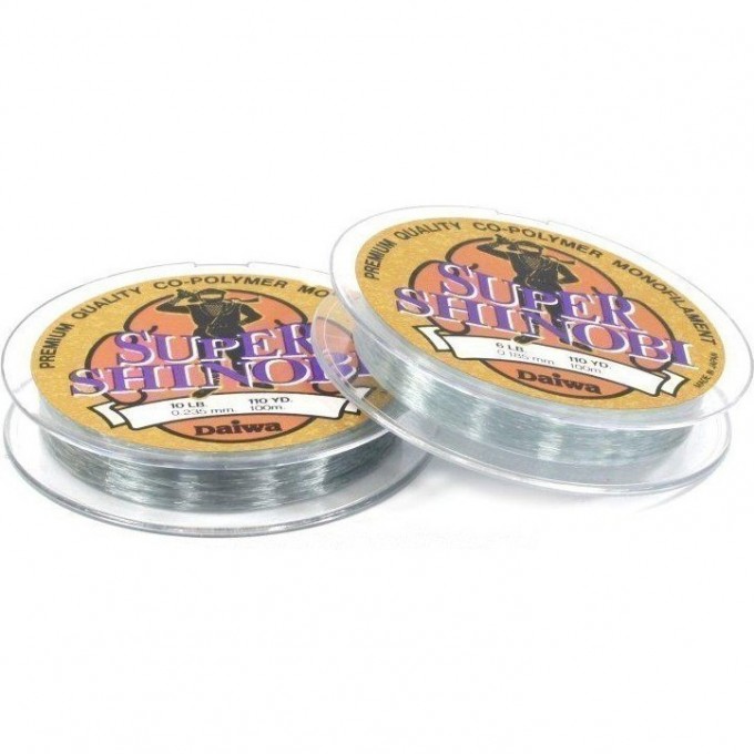 Монофильная леска Super Shinobi изготавливается в Японии концерном Daiwa. Для ее производства используется нейлон премиум класса. Эта серия имеет самые важные качества, которые рыболовы хотят получить от монофила: эластичность, прочность и абразивоустойчивость. Леска хорошо держит узел. Эти качества сохраняются после долгого нахождения в воде. К тому же, леска имеет светло-серый оттенок и почти невидима в воде. Super Shinobi часто используется рыболовами для ловли морской форели. Для легкого скольжения при забросе на всю поверхность лески нанесено специальное покрытие. Размотка составляет 100м.